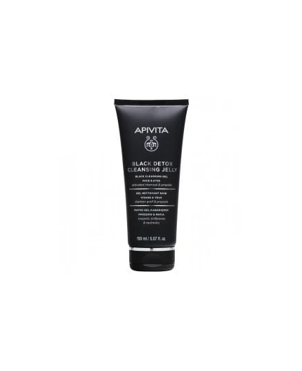 Gel detergente nero detossinante con carbone attivo e propoli per detergere efficacemente viso e occhi senza disidratare.