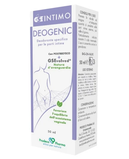 GSE Intimo Deogenic è un prodotto in spray aerosol, formulato in modo specifico per completare l’igiene intima quotidiana. La presenza del gel di Aloe e dell’acqua di Calendula aiuta a lenire e a idratare pelle e mucose. L’Estratto di semi di Pompelmo, potenziato dal processo di iperfermentazione (GSEvolved), svolge un’azione antiossidante e previene la comparsa di cattivi odori in sinergia con il Lichene islandico. I postbiotici da Bifidobatteri svolgono un’azione di riequilibrio del microbiota, rinforzano e proteggono la barriera cutanea. La presenza di Acido lattico favorisce il fisiologico equilibrio dell’ecosistema vaginale. Il prodotto può essere utilizzato anche sulla biancheria intima.