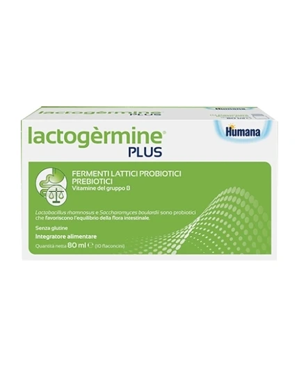 Integratore alimentare a base di probiotici: lactobacillus rhamnosus (ATCC 53103) e saccaromyces boulardii (CNCM I-3799) e prebiotici (galatto-oligosaccaridi) che favoriscono l’equilibrio della flora intestinale.