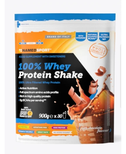 100% Whey Protein Shake Milk Chocolate 900 G. Prodotto da NAMEDSPORT Srl. Minsan 974369593.