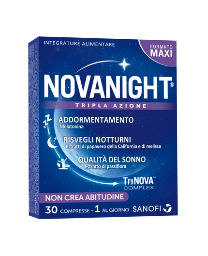 Integratore alimentare con la combinazione Trinova Complex, studiata sulle 3 fasi del sonno, che contiene: